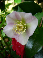 Wie man auf dem folgenden Bild sehen kann, sind Kamelien und Helleborus die perfekten Partner!