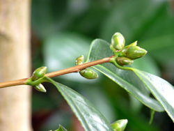Manche Kameliensorten neigen zu Übertreibungen und bilden ganze Knospenbündel an den Triebspitzen aus. Dadurch bleibt den einzelnen Knospen kaum noch Platz sich zu entwickeln. Durch vorsichtiges Herausdrehen überzähliger (höchstends erbsengroßer) Knospen kann man daher die Blütenqualität positiv beeinflussen.